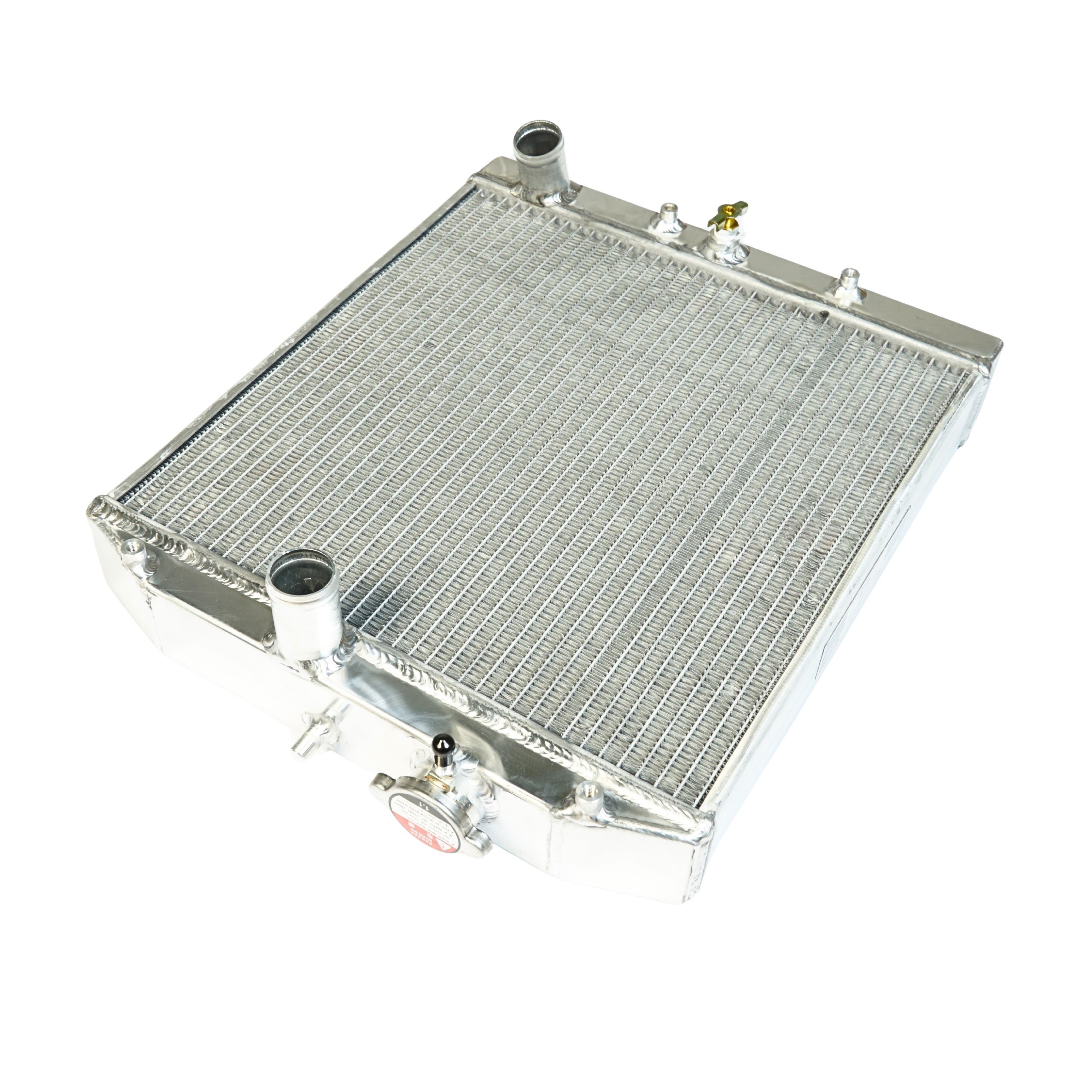 Wykonana z lekkiego, ale wytrzymałego aluminium, chłodnica zapewnia doskonałą przewodność cieplną i odporność na korozję. Jej zaawansowany design i skuteczne chłodzenie pozwalają utrzymać temperaturę wody w silniku na optymalnym poziomie, co ma kluczowe znaczenie dla efektywności i trwałości silnika.
